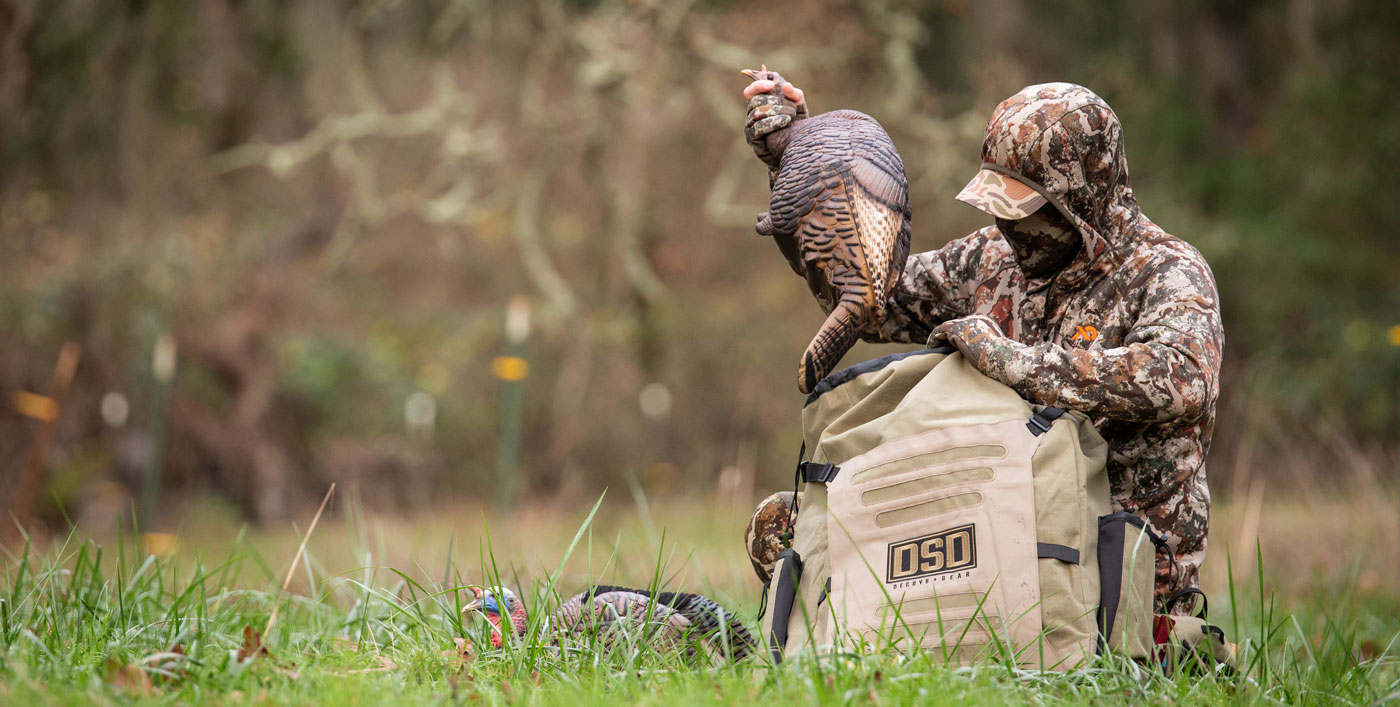 The DSD Flydown System combines a chest pack that is specifically designed for turkey hunting with a versatile decoy backpack that adapts to your unique hunting style. Use the Chest and Backpack individually or combine them for the ultimate run and gun system.